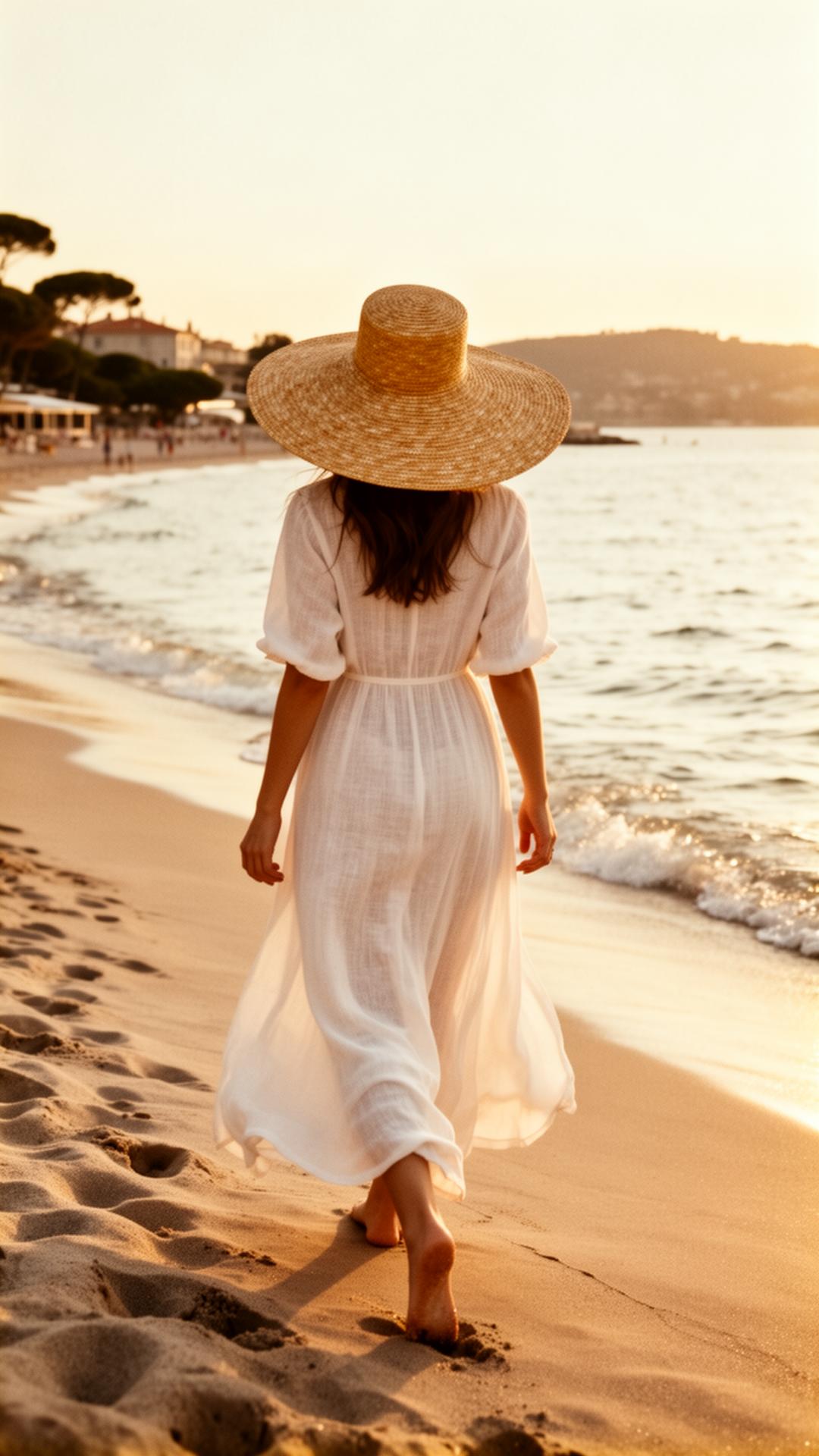Une marche pieds nus, un drap de lin sur les épaules, la mer encore froide. La journée n'a pas commencé — elle s'écrit déjà.